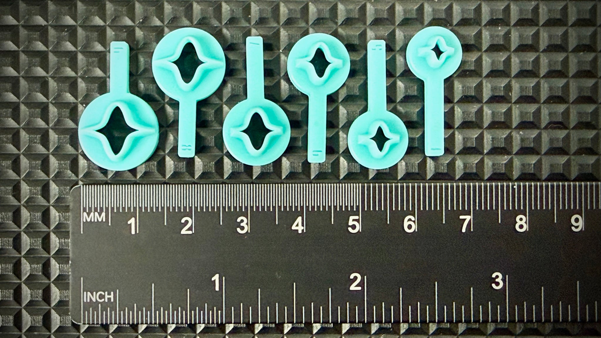 6x finely crafted, affordable cutters with size ident on a handy handle with a fine cutting edge.